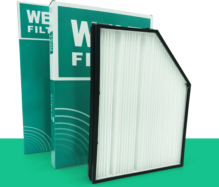 WELT FILTER kabin filtrelerinde, elektrostatik özelliklere sahip olan yüksek kaliteli filtrasyon malzemesi kullanıyoruz; böylece filtrelerimiz zararlı kirletici maddelerin (insan saçının çapından onlarca kez daha küçük olan) mikroskobik partiküllerini bile tutabiliyor.